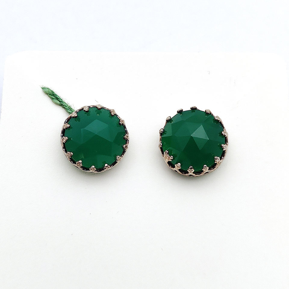 Natural Green Onyx 12mm Round 925 Sterling Silver Designer Stud Earrings 5.2 gms Handmade Fine Jewelry Gemstone women Earrings