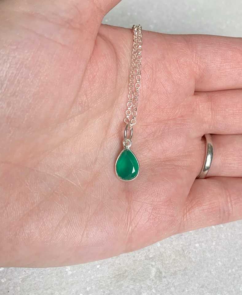 Natural Green Onyx Faceted Pear Gemstone 92.5 Sterling Silver 18"Long Necklace Beautiful Jewelry Mens Jewelry Wholesale