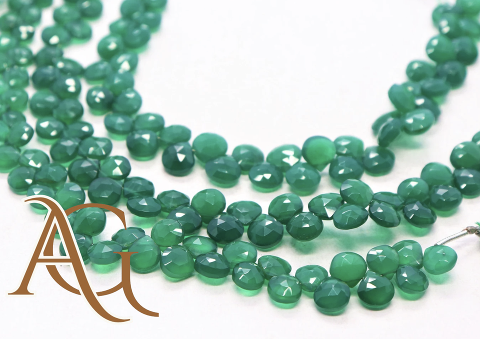 Natural Green Onyx Gemstone Briolette Teardrop Top drilled Loose Beads emerald color China Jewelry Making Crystal Quartz
