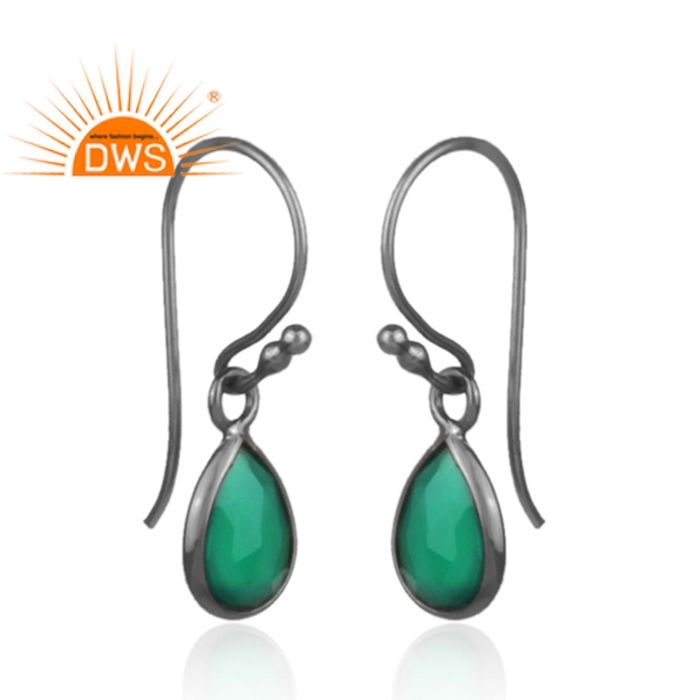 Natural Green Onyx Gemstone Teardrop Earring Jewelry Rhodium Plated Silver Handmade Earring Woman's Jewelry Supplier