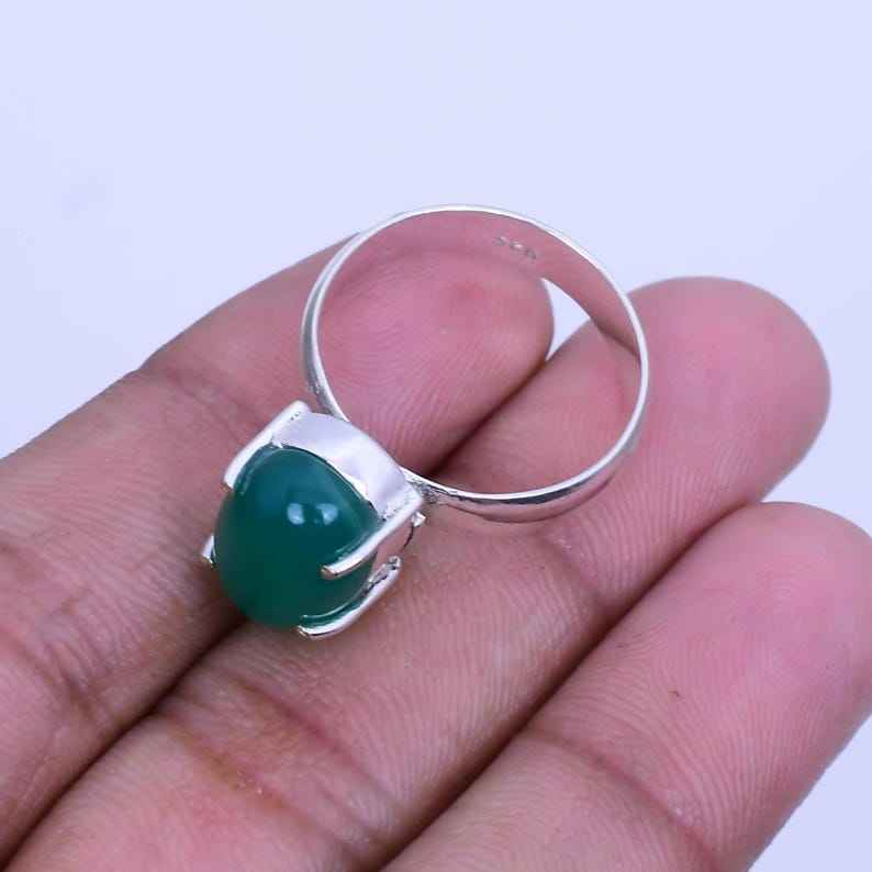 Natural Green Onyx Ring 925 Sterling Silver Bohemian Handmade Jewelry Statement Gift For Women Men