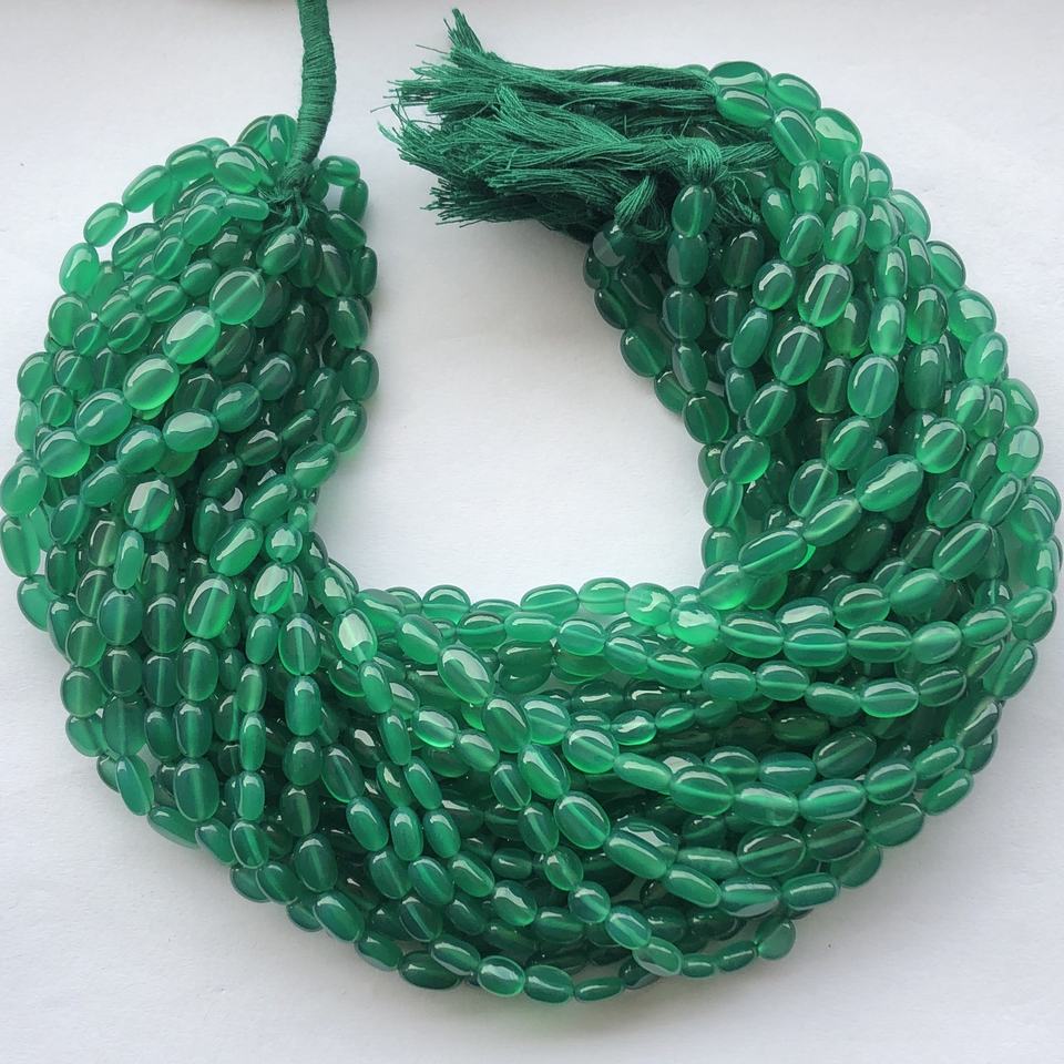 Natural Green Onyx Stone Smooth Oval Shape Jewelry Making Beads Strand