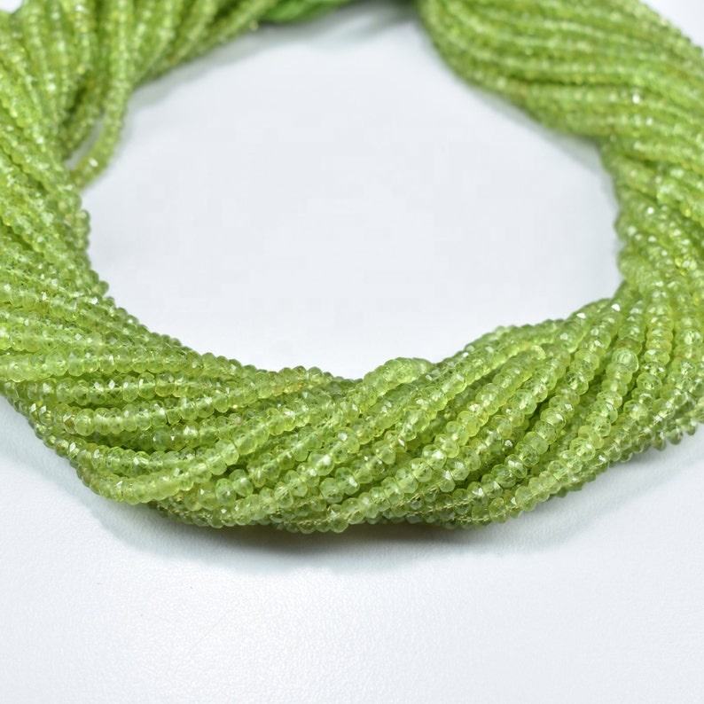 Natural Green Peridot Faceted Rondelle Gemstone Beads Strands 3.5mm Handmade Peridot Beads For Jewelry Making Bulk Wholesale