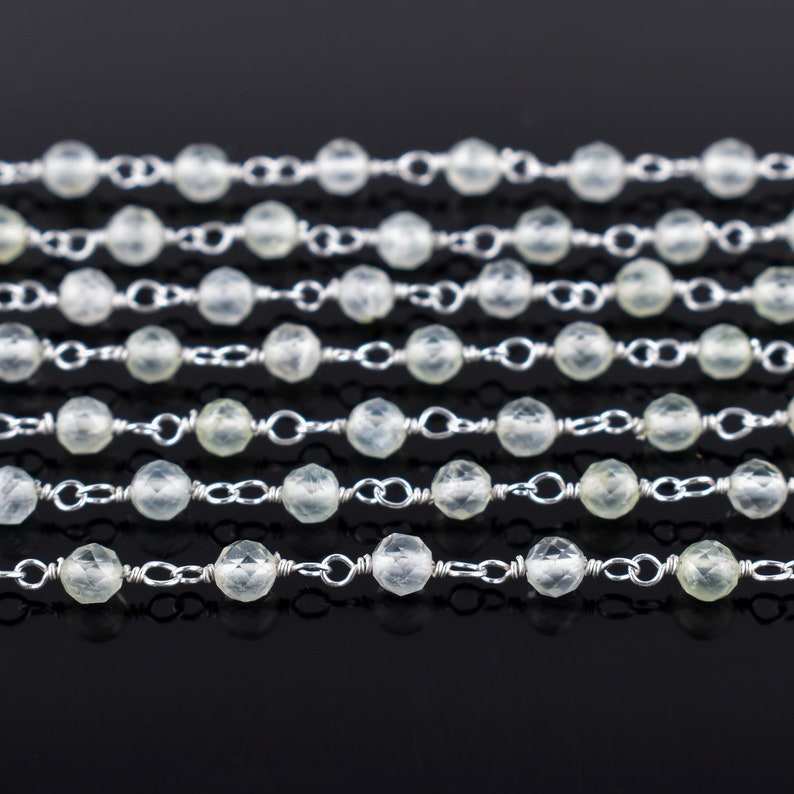 Natural Green Prehnite Faceted Round Beads 925 Sterling Silver Rosary Link Chain for Jewelry Making at Wholesale Factory Price