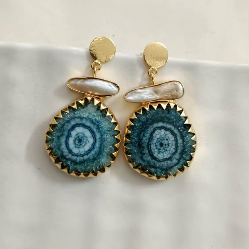 Natural Green Stone And White Pearl Elegant Design Gold Plated Brass Jewelry Handmade Earrings Fashion Accessory For Women