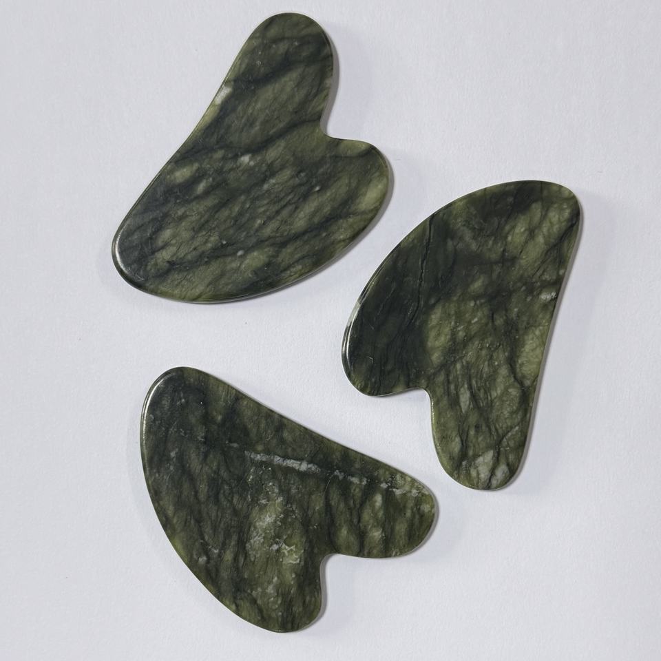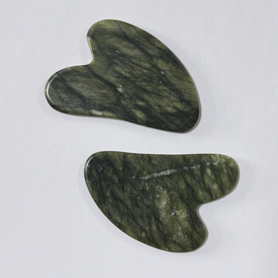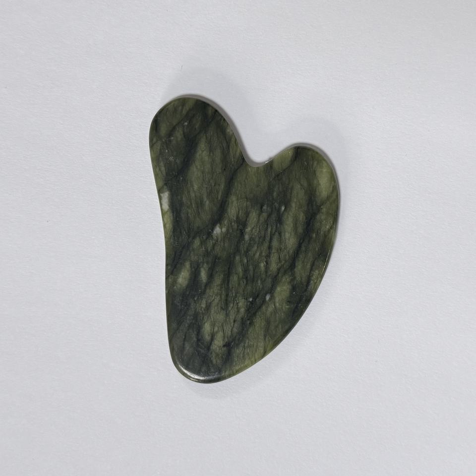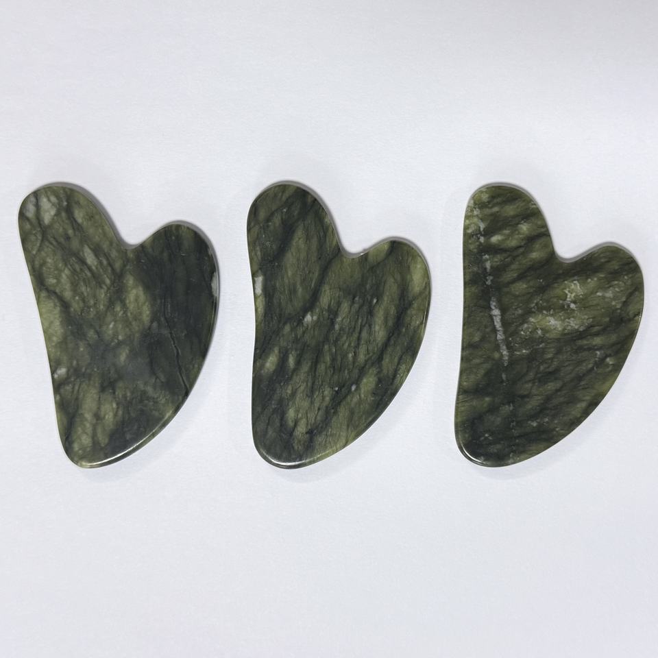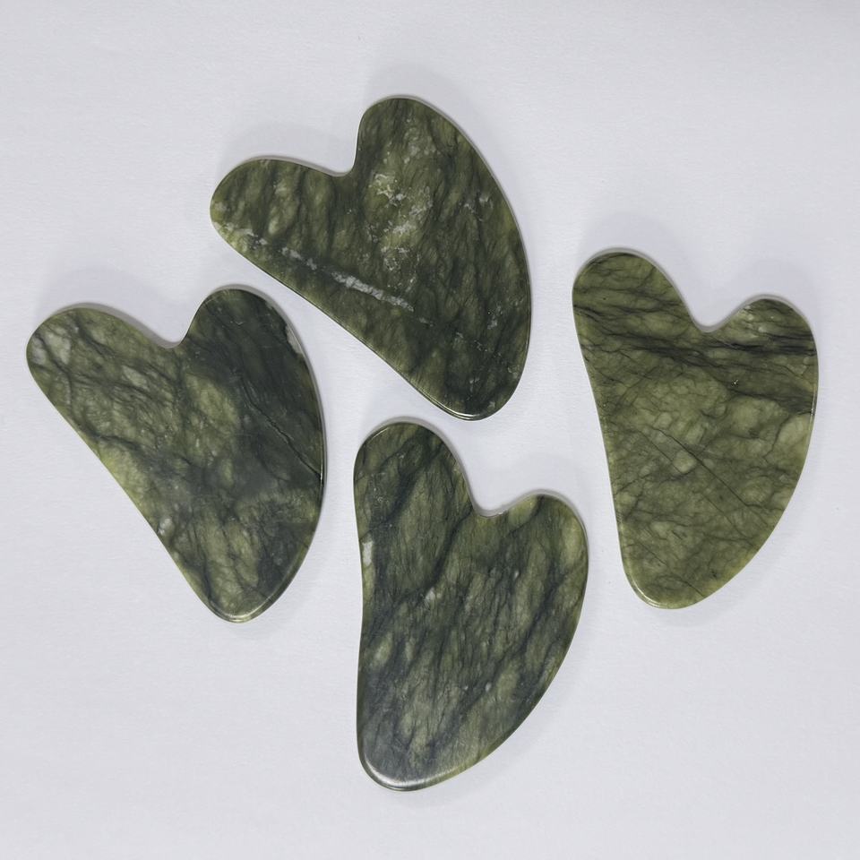 Natural Green Stone Xiuyan Heart-Shaped Facial Massager Guasha Board