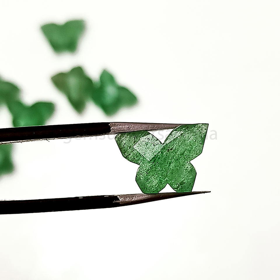 Green Strawberry Quartz Butterfly Carving Beads