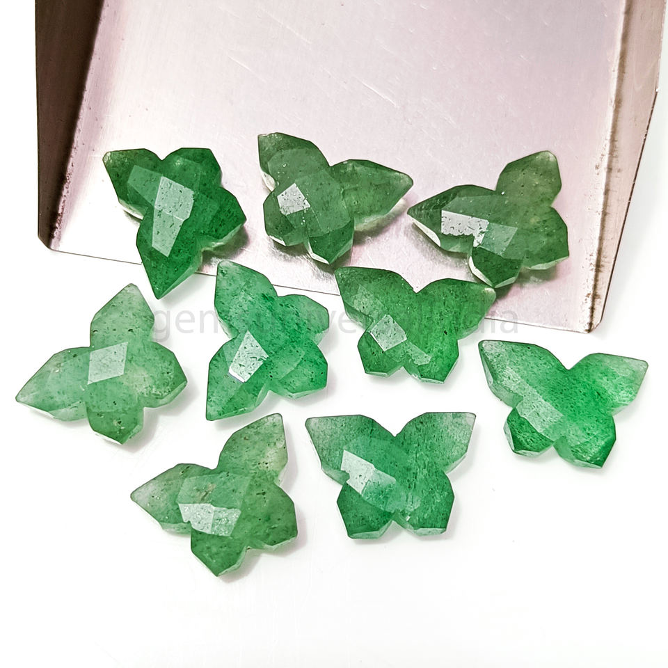 Natural Green Strawberry Quartz Butterfly Shape Carved Gemstone Beads for Jewelry Making 14mm Loose Hand Carving Crystals Bulk