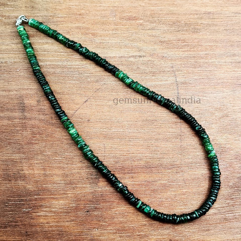 Product name:Green Strawberry Quartz Gemstone Smooth Tyre Beaded Necklace