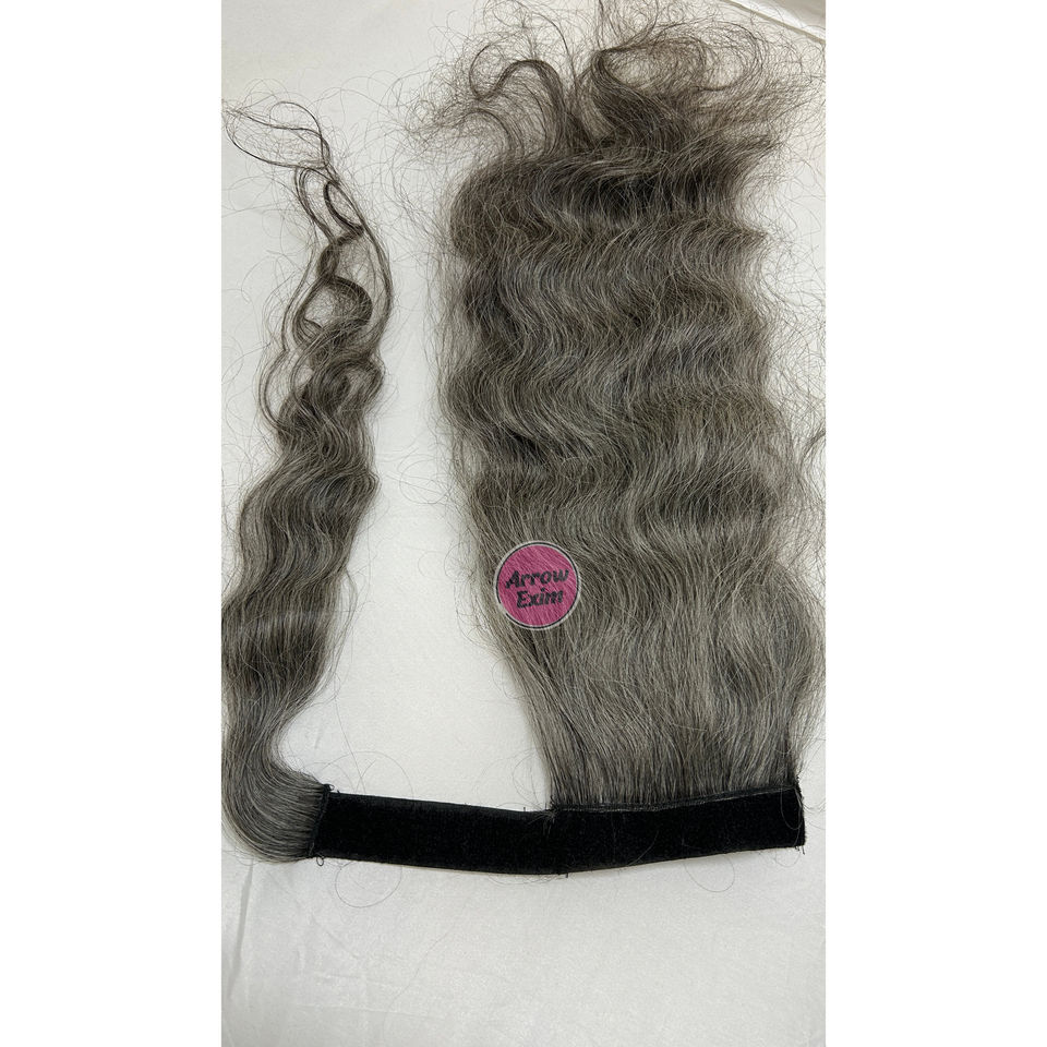 Natural Grey Curly Indian Remy Hair Wrap-around Ponytail Made From Raw Hair