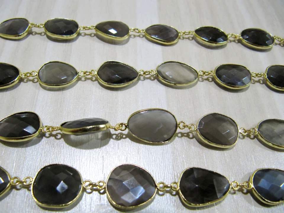 Natural Grey Moonstone Nugget shape Briolette Bezel Connector Chain Uneven Free Shape 12to15mm