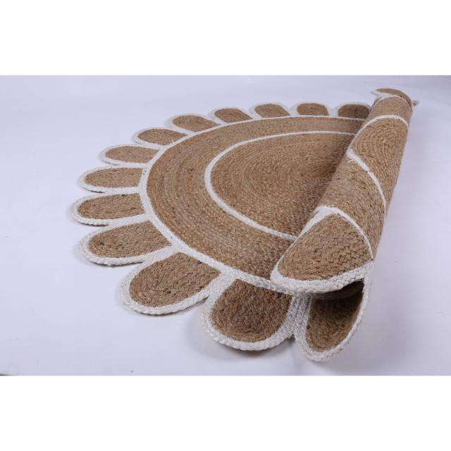 Natural Hand Braided Machine Stitched Jute Round Rug Gold Bleach Decorative Handmade Rug Eco Friendly Sustainable Reversible