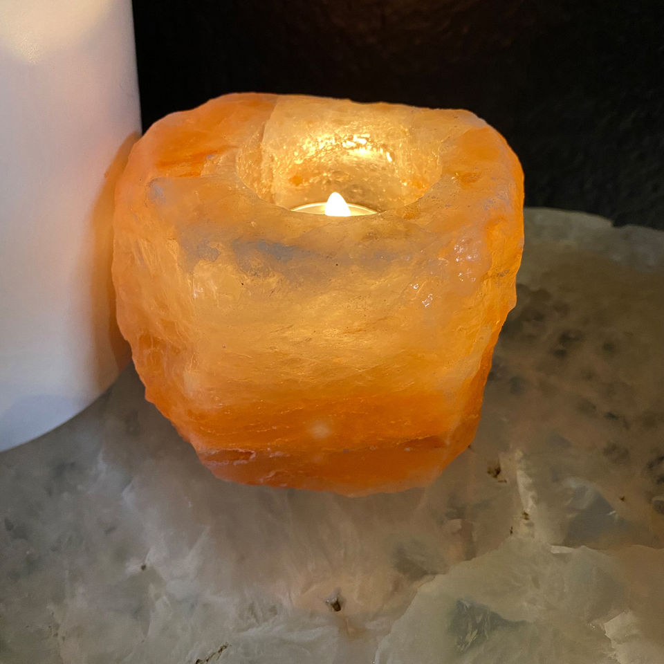 Natural Hand Carved Himalayan Salt Tealight Pink Candle Holder Himalayan Salt Candle Holder Sale Price Custom pecking