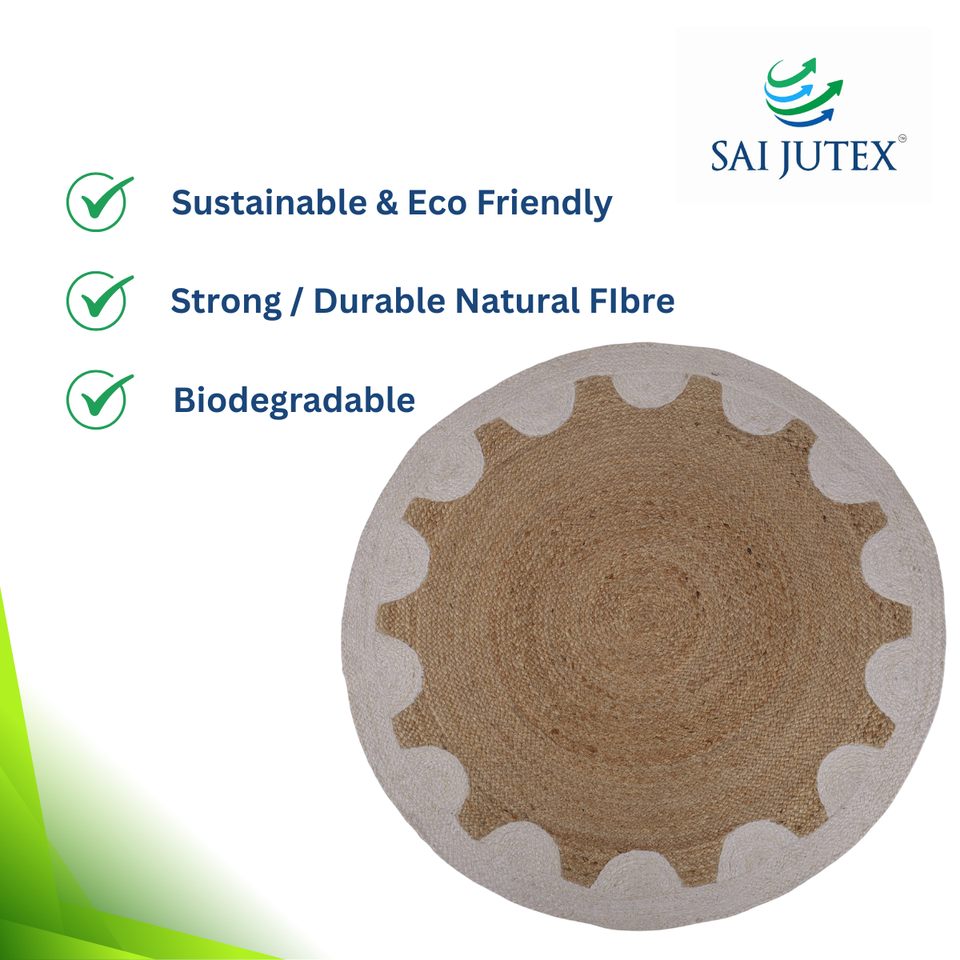 Natural Handmade Braided Machine Stitched Jute Modern Round Decorative Rug Gold Bleach Eco Friendly Reversible Sustainable