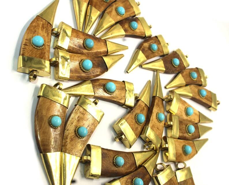 Natural Handmade High Quality Horn Pendant with Brass Work Vintage Jewelry Christmas Gift From India