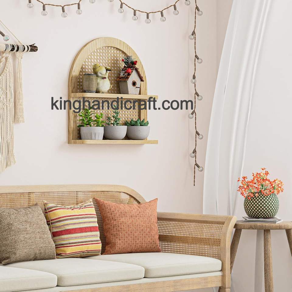 Natural Handmade Rattan Kids Bookshelf Montessori-Inspired Wicker Toy Storage Organizer Eco-Friendly Nursery Shelf