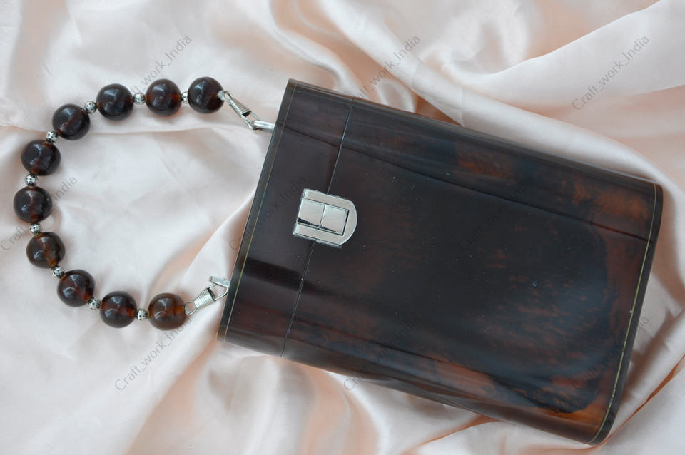 Natural Handmade Resin Beaded Evening Clutch Bag for Women Luxury Party Wedding Designer Top Handle Purse