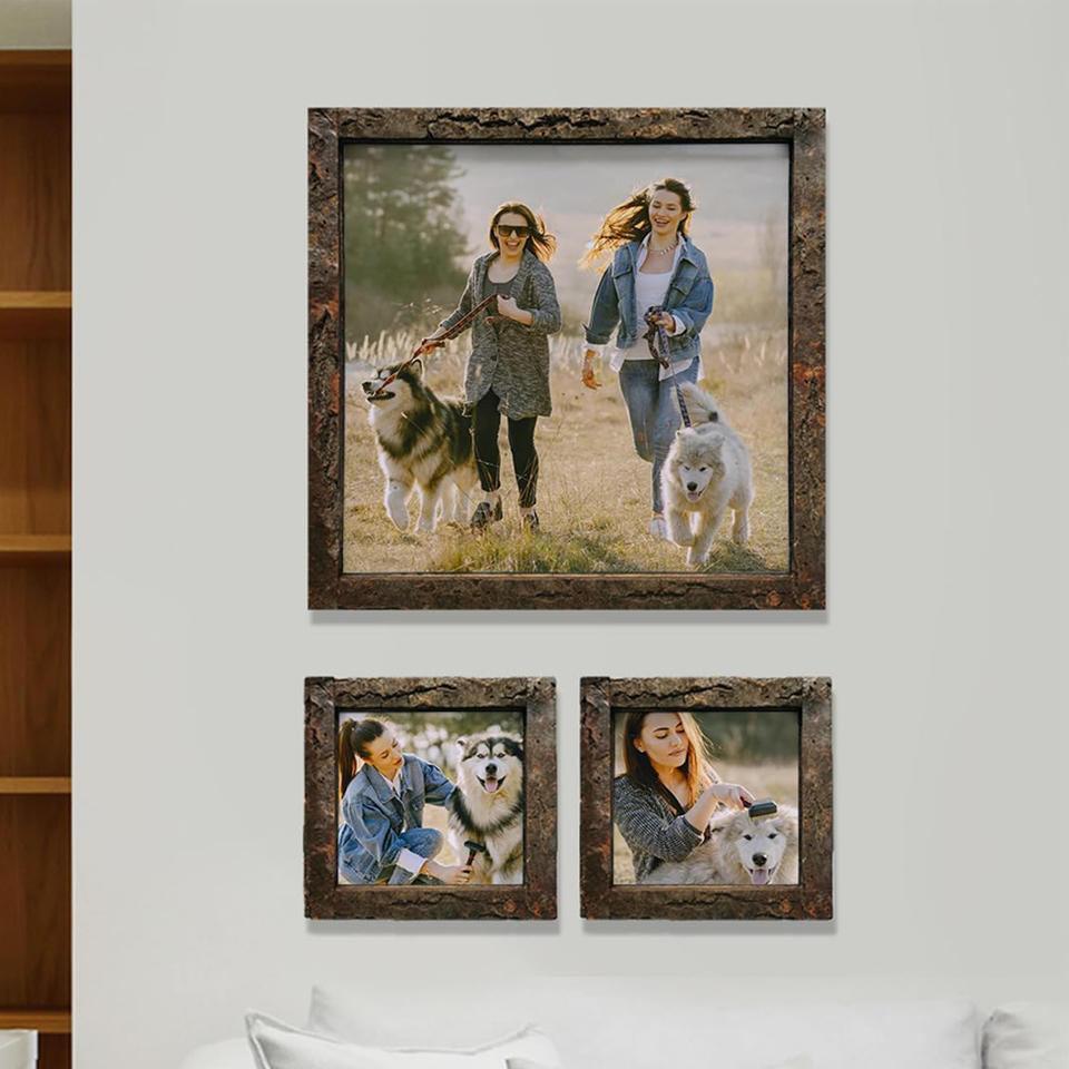 Natural Handmade Wood Photo Frame Rustic Style with Real Bark Glass Picture Frame Mango Wood Display for Wall Mount or Tabletop
