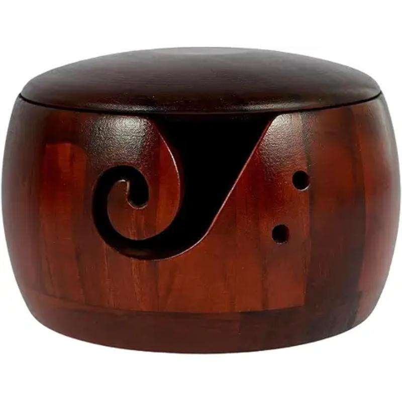 Natural Handmade Wooden Yarn Bowl Crochet Yarn Storage Bowls for Crochet Knitting Wood Yarn Bowl with Cover Lid