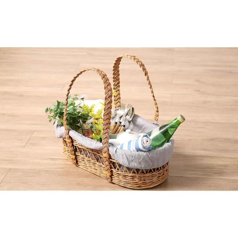 Natural Handwoven Rattan Wicker Picnic Basket Food Storage Organizer for Picnic, Camping Manufacture in Vietnam