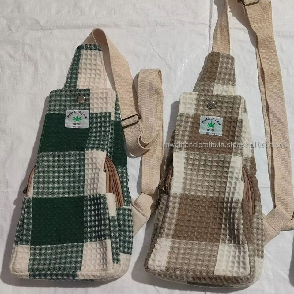 Natural Hemp Backpack Handmade Nepal Cotton Fabric with Zipper Closure and Two Straps Wholesale From India 300623385E