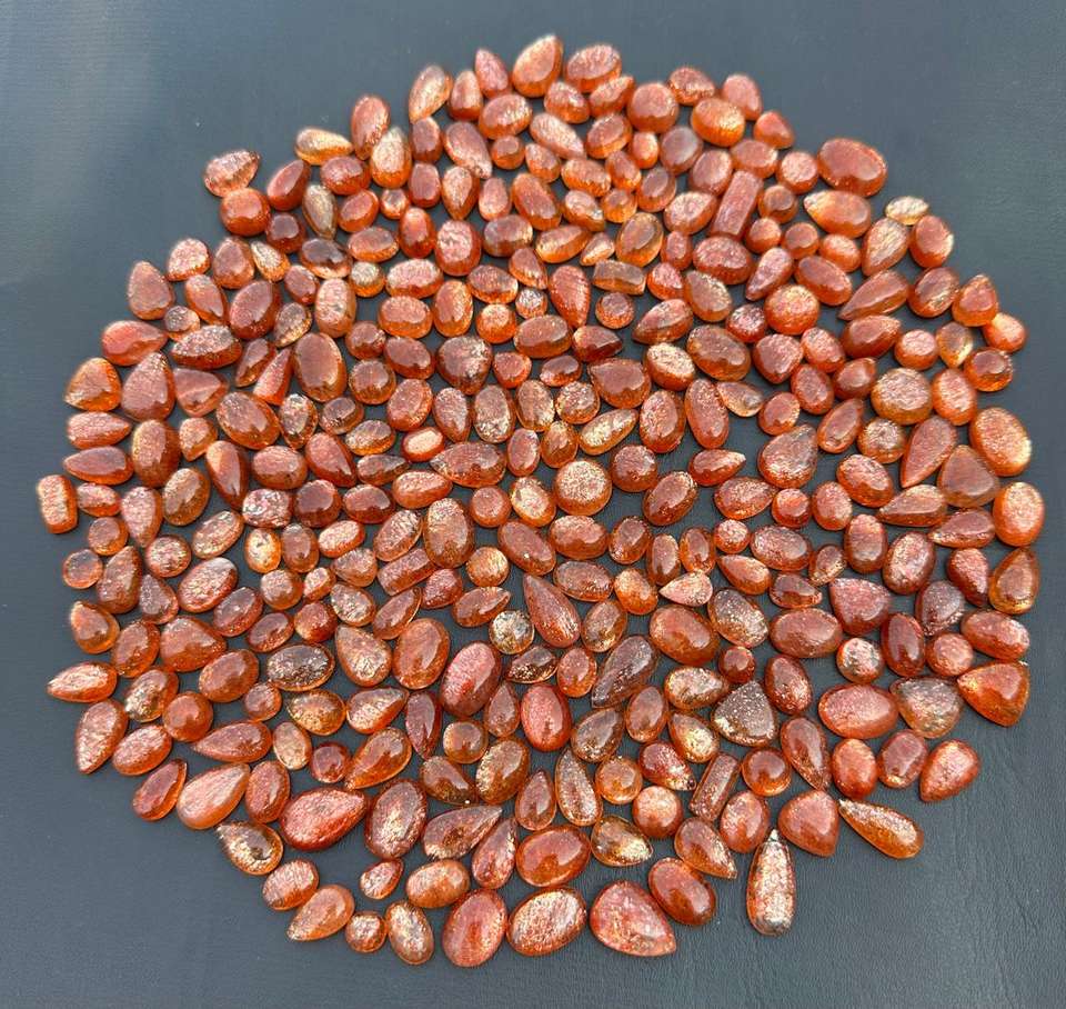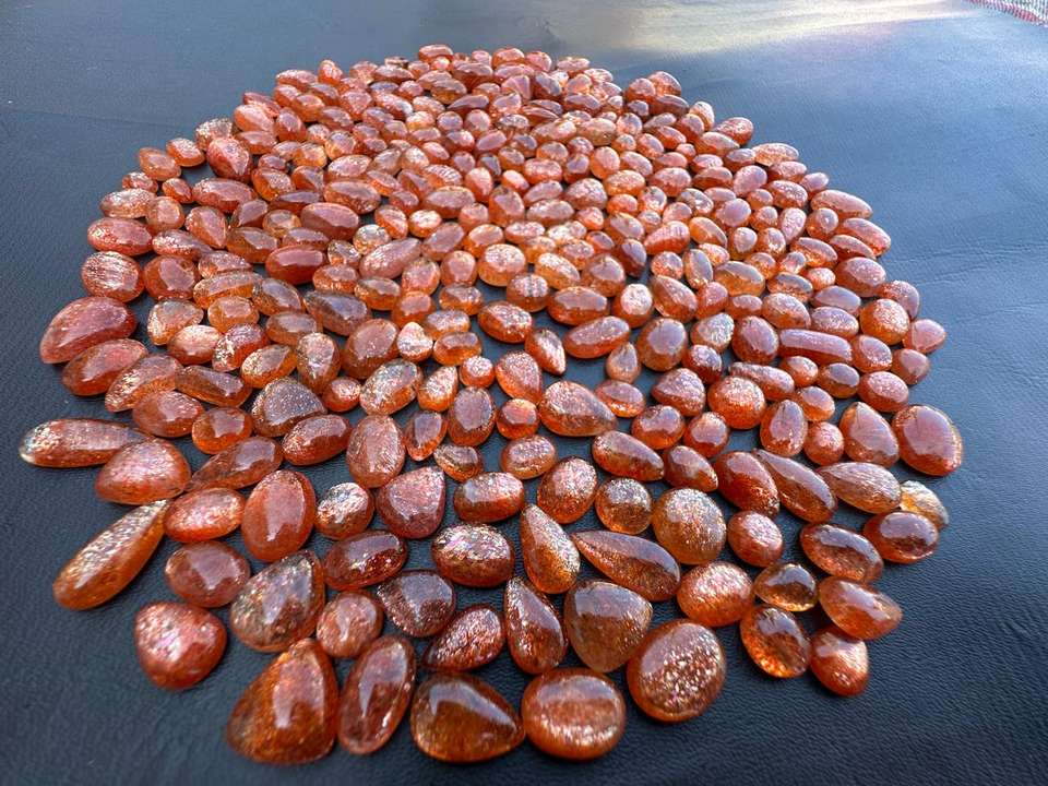 Natural High Quality Orange Rainbow Sparkle Sunstone Gemstone 7-19mm African Polished Mix Shape Cabochon Loose