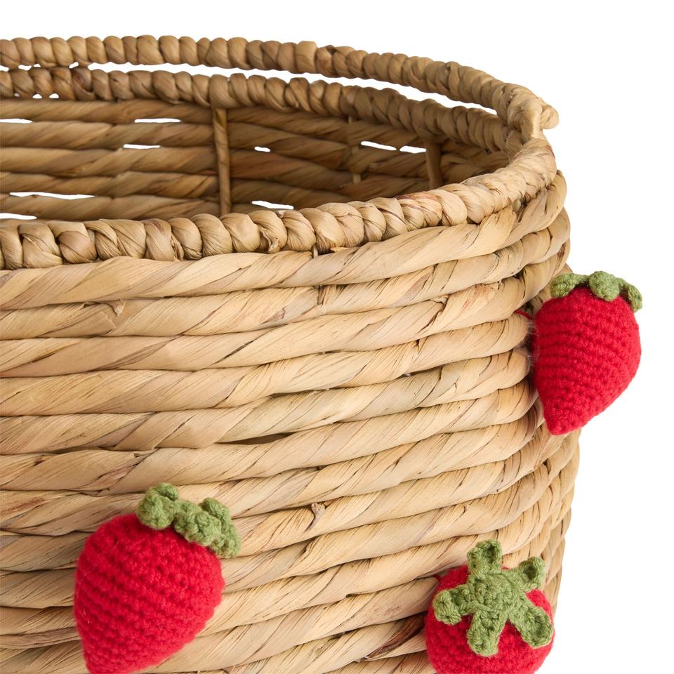 Natural Hyacinth and Crocheted Strawberry Basket with Swing Handle