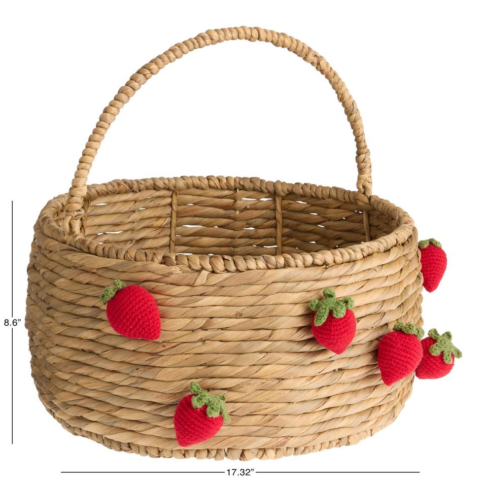 Size: D17,3 x H8,6 inch:Natural Hyacinth and Crocheted Strawberry Basket with Swing Handle