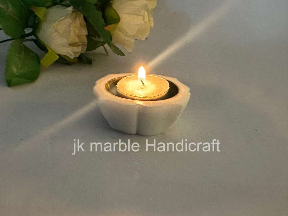 Natural Indian Marble Handmade High Quality Marble Diya With Brass Home Decor Office Decor Candle Holder White Color