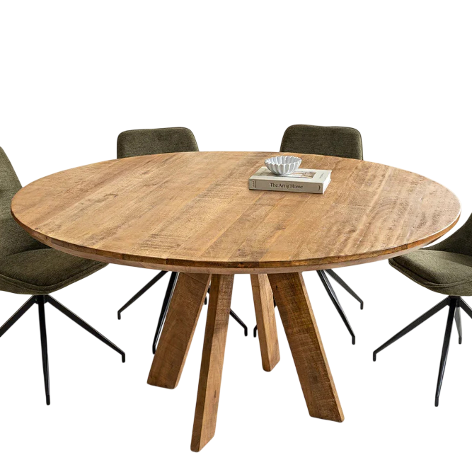 Natural Industrial Mango Wooden Round Shape Cafe Bistro Bar Restaurant Home Kitchen European Style Rough Finish Dining Table