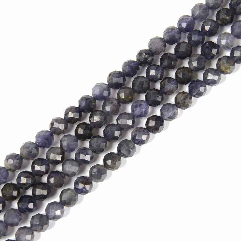 Natural Blue Iolite Micro Faceted Round Beads 2mm 3mm 4mm Iolite Gemstone Loose Beads For Jewelry Making At Wholesale Price Bulk