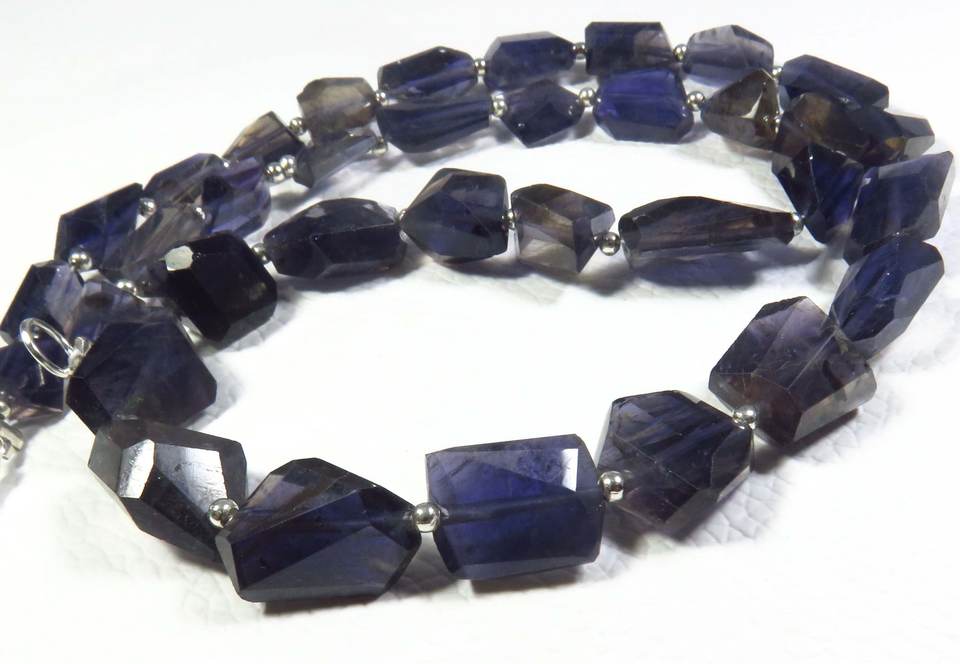 Natural Faceted Cut 9-16mm Blue Iolite Water Sapphire Gemstone Necklace 18 Inches with 35pcs Loose Nugget Tumble Beads"