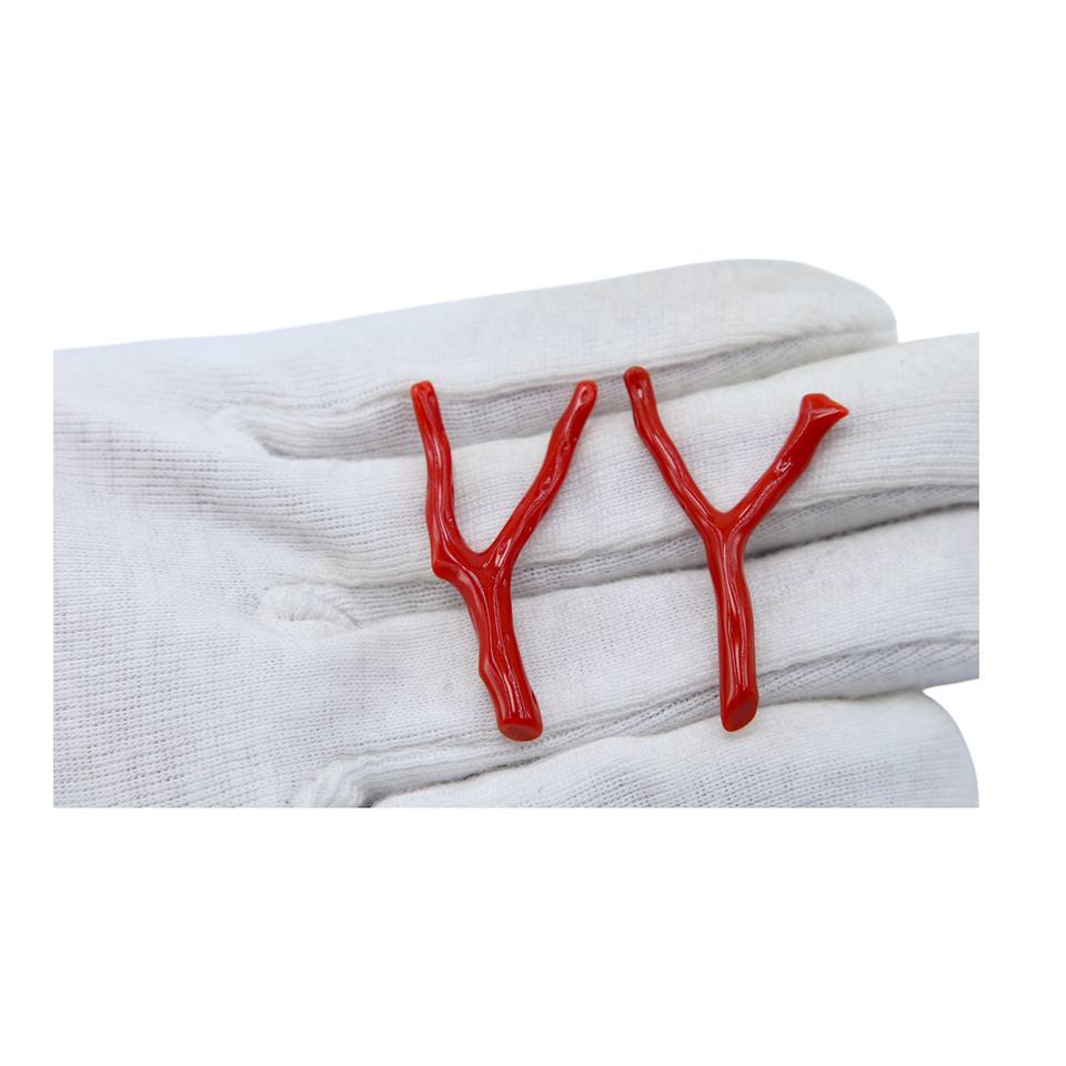Natural Italian Red Coral Stick Shape Rare Quality Loose Gemstones Matched Pair Rough Polished Wholesale Price