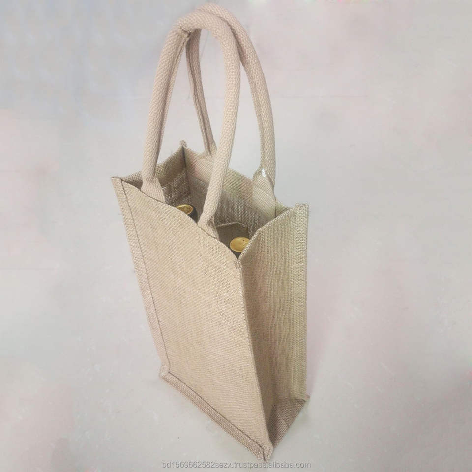 Natural Jute Burlap Wine Tote Gift Bag Fashionable Double 2 Bottles 100% Eco-Friendly Drawstring Closure Dimensions 14.17"H X