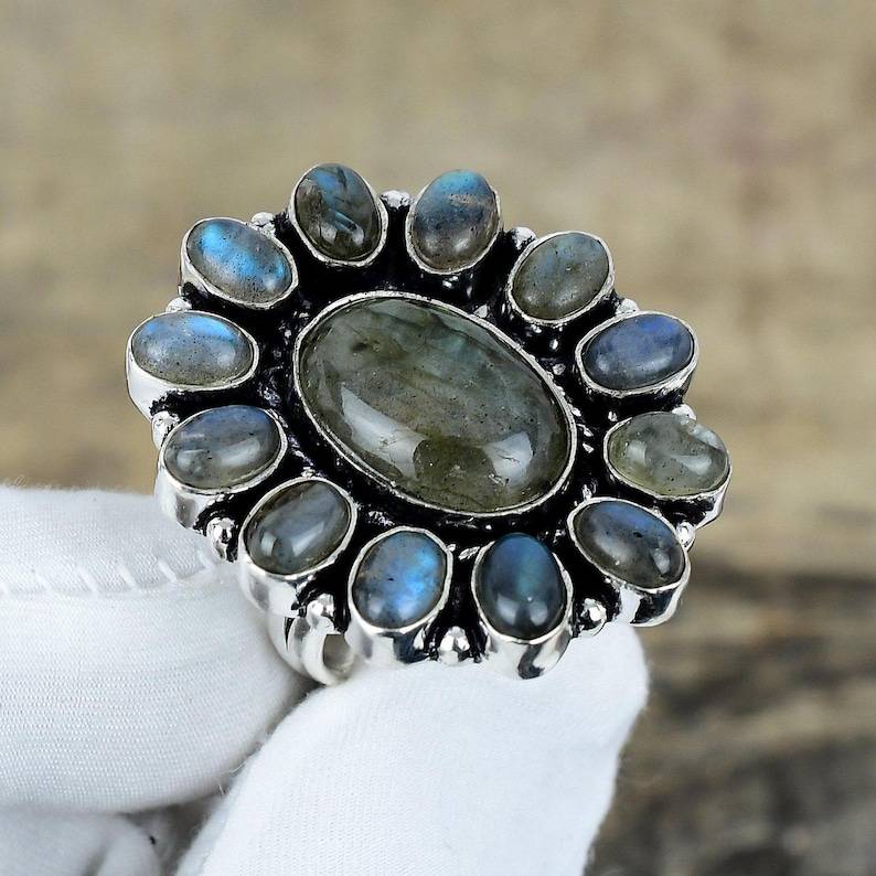 Natural Labradorite 925 Sterling Silver Bezel Setting Vintage Ring Handmade Gemstone Jewelry Customized Design Fashionable