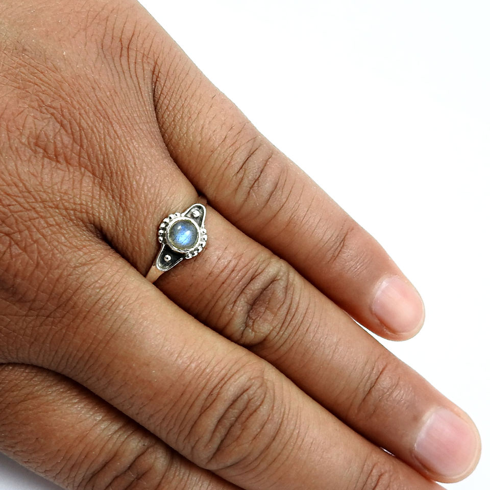 Natural Labradorite Bezel Setting Rings Handmade Vintage 925 Sterling Silver Gemstone Party Ring for Women Fashion Jewelry