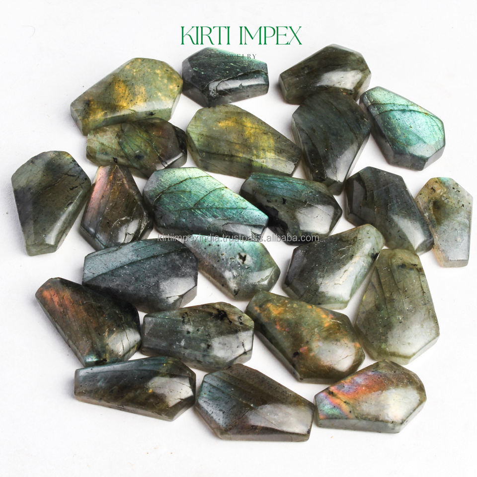 Natural Labradorite Coffin Shape Cabochon Semi-Precious Loose Crystal Trending Flat-Back Cabochons Fine Quality Gem For Crafting