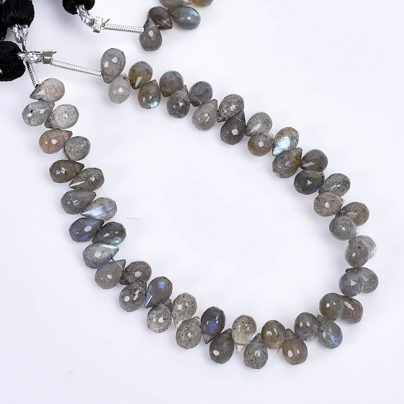 Natural Labradorite Faceted Teardrop Shape Gemstone Beads Strands 6x8mm Loose Beads for Jewelry Making at Wholesale Price