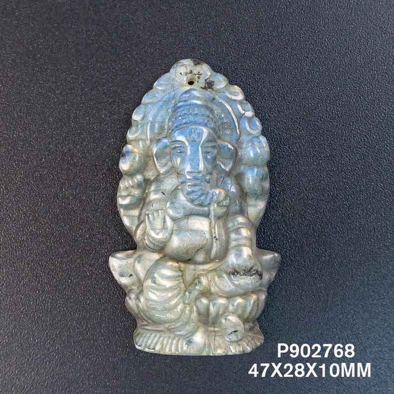 Natural Labradorite Ganesha Pendant with Blue Flash Elegant Handmade Gemstone Jewelry for Protection and Blessings