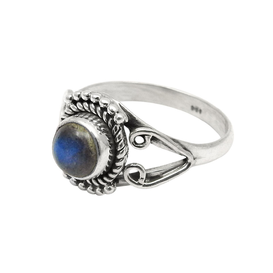 Natural Labradorite Gemstone 925 Sterling Silver Round Shape Chunky Ring Handmade Jewelry Wholesale Price Bulk Suppliers India