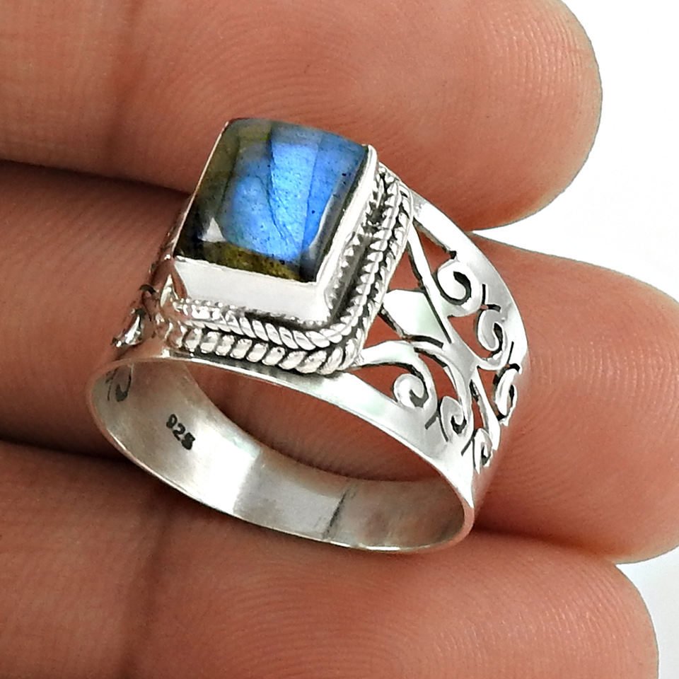 Natural Labradorite Gemstone 925 Sterling Silver Square Shape Ring for Man Handmade Jewelry Direct Factory Price Bulk Suppliers