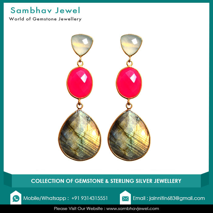 Natural Labradorite Gemstone Fine Jewelry Solid 925 Sterling Silver Gold Plated Vintage Wedding Gift Women Drop Dangle Earrings