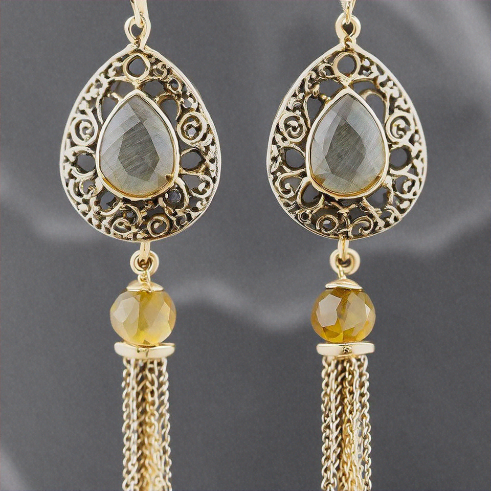 Natural Labradorite Gemstone Pear Shaped Earring Pairs Gold Plating Dangle Drop Hook Trendy Wedding Charm Earrings