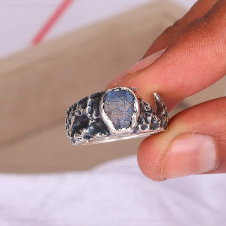 Solid 925 Sterling Silver Boho Vintage Style Men's Ring Natural Labradorite Gemstone Pearl Diamond for Wedding Party Fine Rings