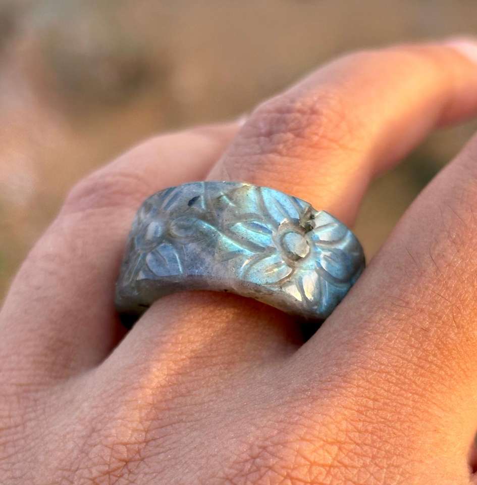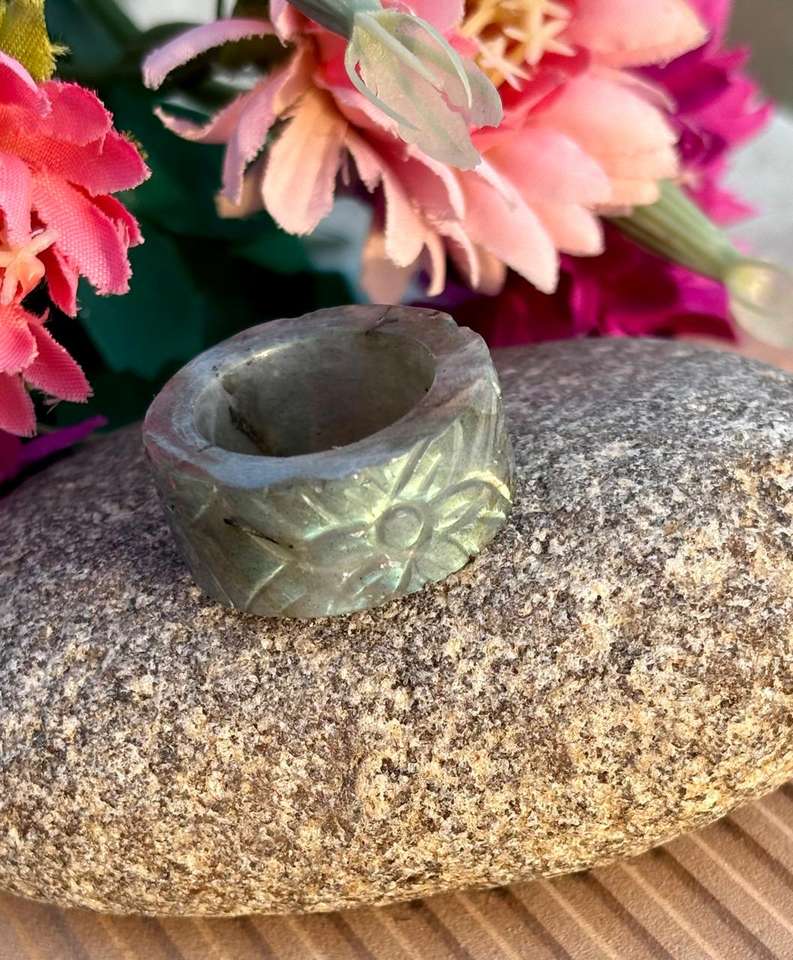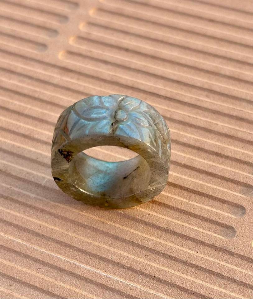 Natural Labradorite Gemstone Ring Statement Ring For Men Or Women Hand Carved Flower Designed Band Ring Special Gift For Her