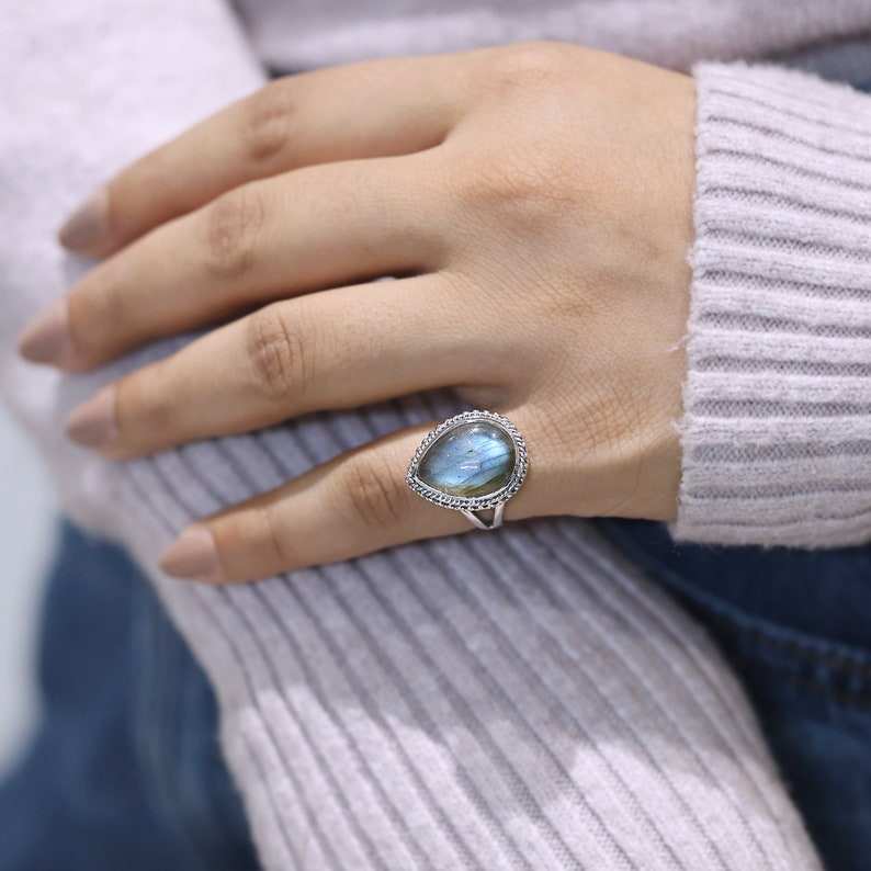 Natural Labradorite Pear Shape Gemstone Ring 925 Sterling Silver Spit Band Rings Jewelry Women Fine Fashion Rings at Bulk Price