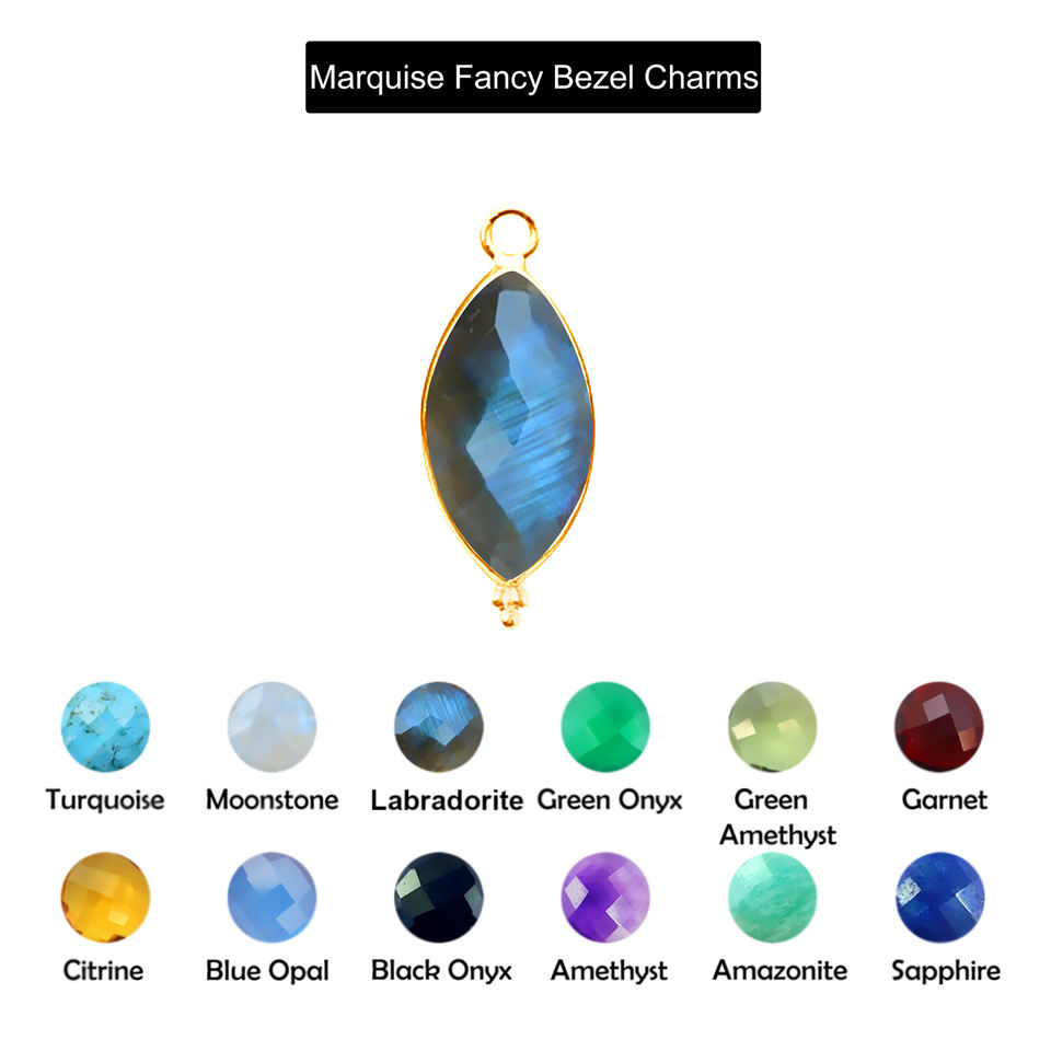 Best Fashion Jewelry for Birthday Gold Plated Marquise Horse Eye Shape Pendant Charm Bracelet Natural Labradorite Stones Gift