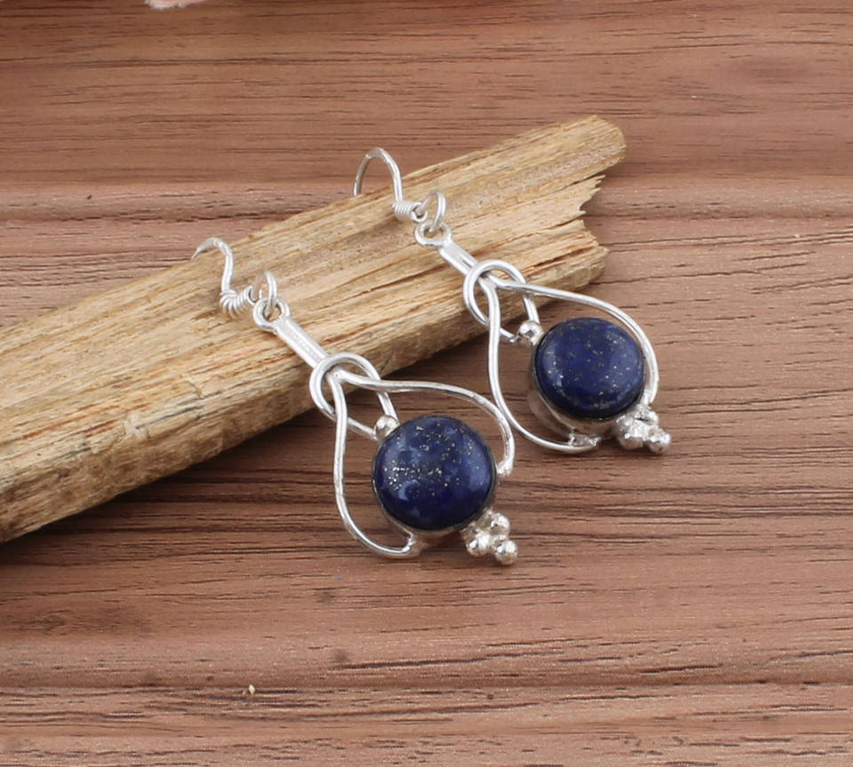 Natural Lapis Gemstone Earrings 925 Sterling Silver Luxury Drop Earrings for Women Wedding & Anniversary Gift