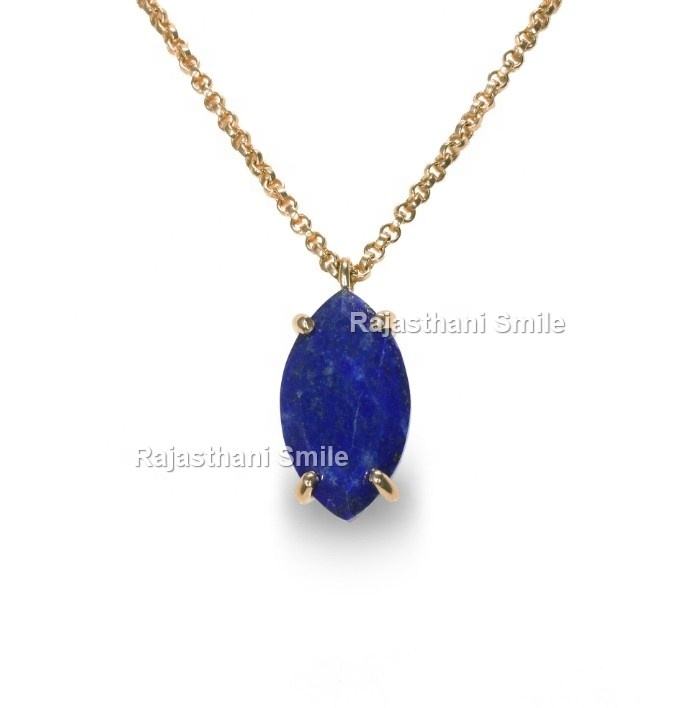 Natural Lapis Lazuli 925 Sterling Silver 14K Yellow Gold Plated Marquise Cut Gemstone Pendant 12x22mm Stone Size Chain for Gifts