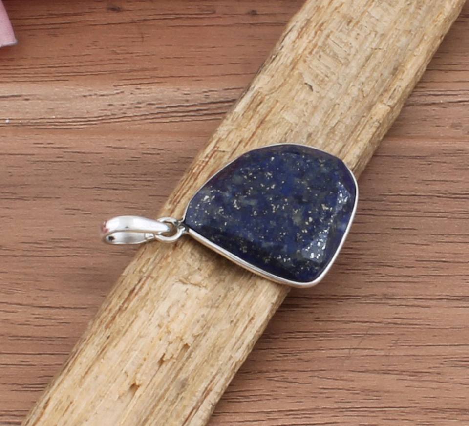 Natural Lapis Lazuli Hexagon Charms 925 Sterling Silver Fancy Shield Shape Blue Gemstone Vintage Platinum Plated Necklace for